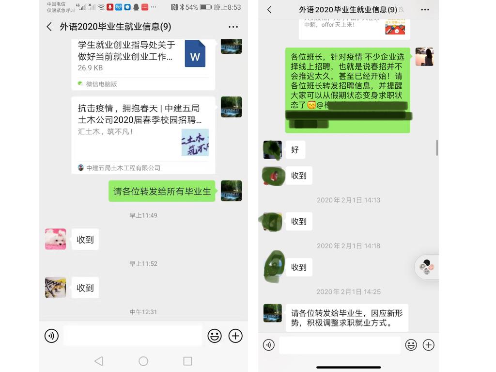 4.强力推动线上就业。针对毕业生,积极推动其转变心态,转发就业信息,推荐求职资源,指导对点推荐就业;主动联系重点单位,了解春季招聘计划,延续招聘意向。疫情之下,加倍沟通,方能有效推进。