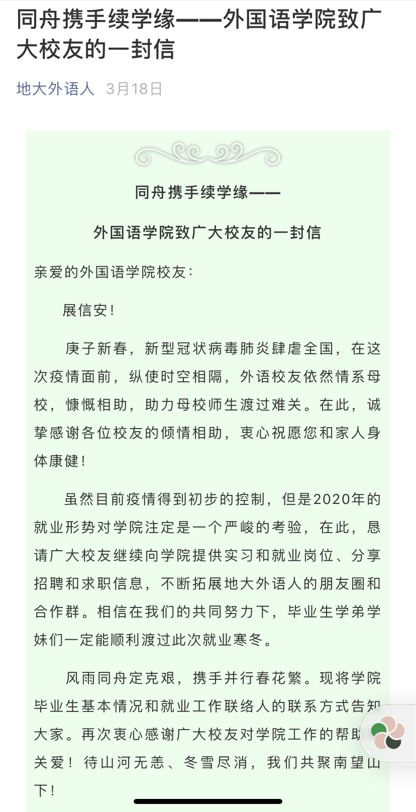 YABO鸭脖官网促进2020届毕业生充分就业工作方案 致校友的一封信