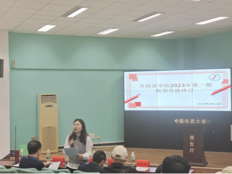 (通讯员 张睿、邹蔚鹤)2023年5月11日下午3:00,YABO鸭脖官网在北一楼报告厅举办2023年第一期院领导接待日,活动主题是外语学子国内外深造论坛。学院党委副书记胡文勤、副院长杨红燕、教育部出国留学培训与研究中心副主任赵英科、英语系党支部书记张地珂和本科各年级学生代表参加了本次活动。