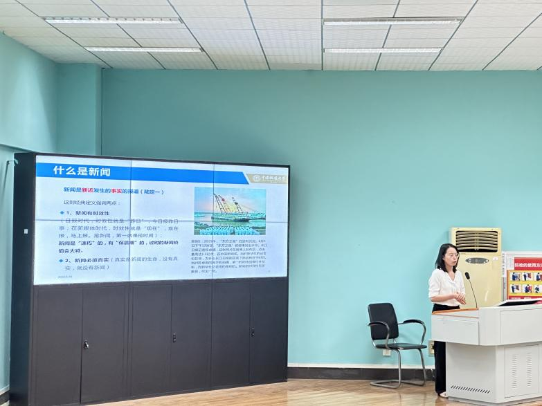 讲解同时,王老师通过结合大量的补充材料与写作实例,让在座学生骨干更直观地感受新闻写作的魅力并且更高效,更牢固地掌握新闻写作的方法。