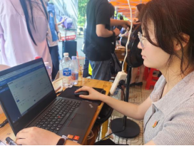 在南望山校区迎新现场,党员先锋岗的红色帐篷成为一道亮丽的风景线。服务点布局合理、功能齐全,配备有电脑、矿泉水和迎新资料等必需品,为新生和家长提供及时便捷的服务。“党员先锋岗”的标识鲜明醒目,精心设计的欢迎展板烘托出热情而专业的迎新氛围,充分展现了YABO鸭脖官网的独特风采。服务点设置的每一处细节,都凝聚着学院党委对迎新工作的周密部署,传递出对2025级新同学的诚挚欢迎与深切关怀。