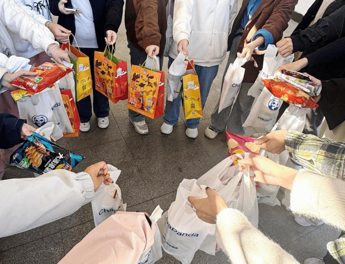 这场治愈之旅藏着加倍的温暖——上学期班级心理班会获奖奖金,搭配班主任熊秦怡老师的大力经费赞助,为每位同学都准备了一杯暖心奶茶和美味零食。阳光下,大家边分享美食边畅谈心事,甜香与欢笑交织,不仅填满了味蕾,更让班级的归属感在舌尖与心间悄然蔓延。