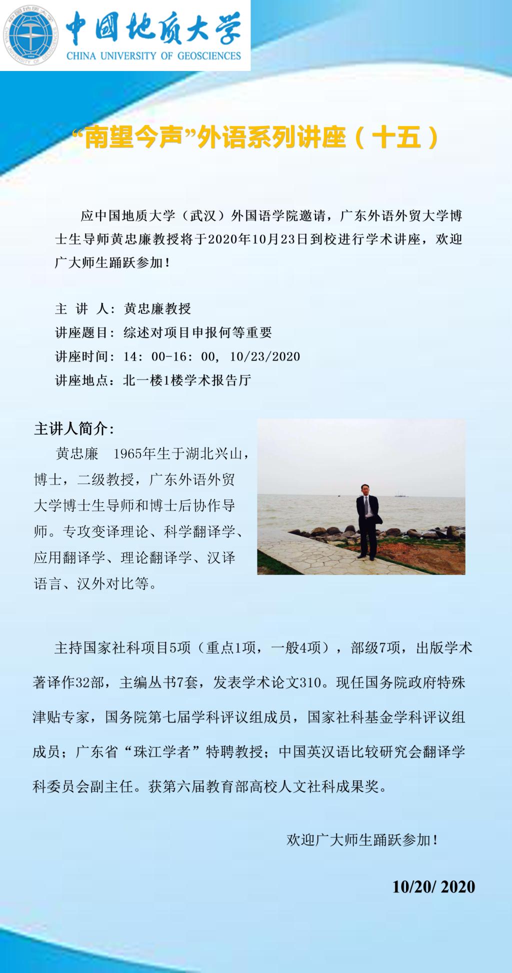 “南望今声”外语论坛系列讲座(十五)通知