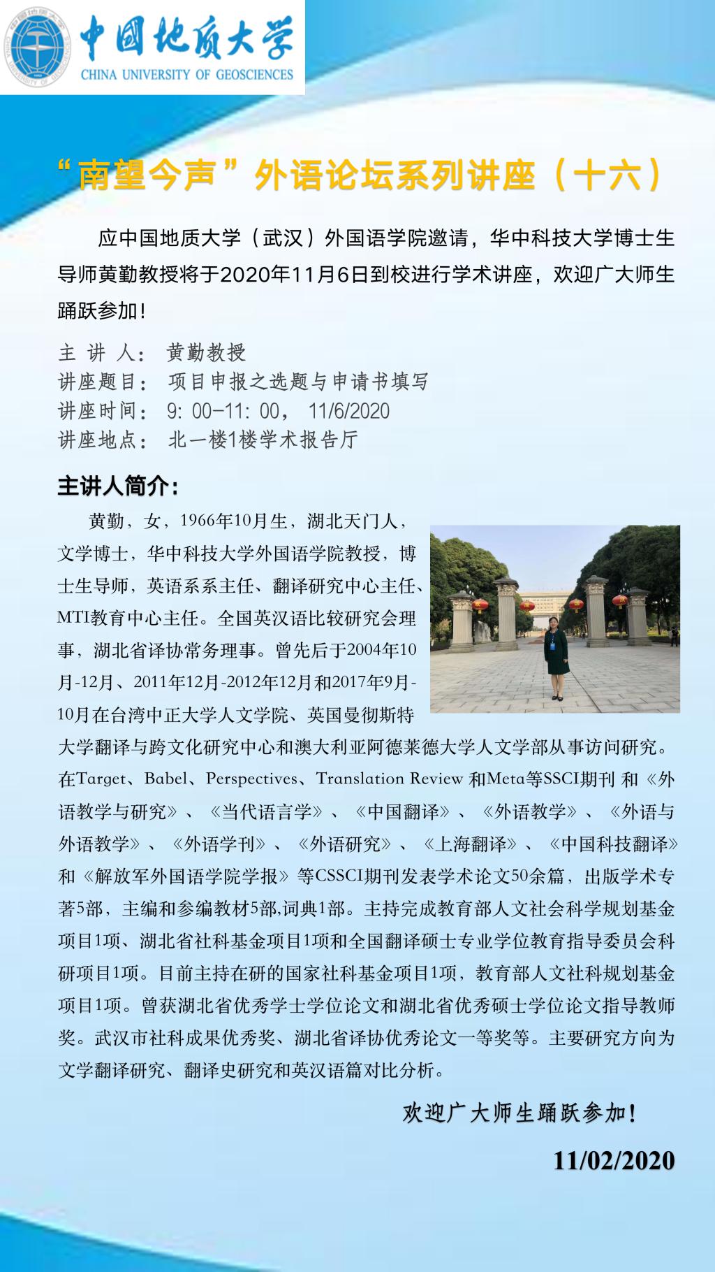 “南望今声”外语论坛系列讲座(十六)通知