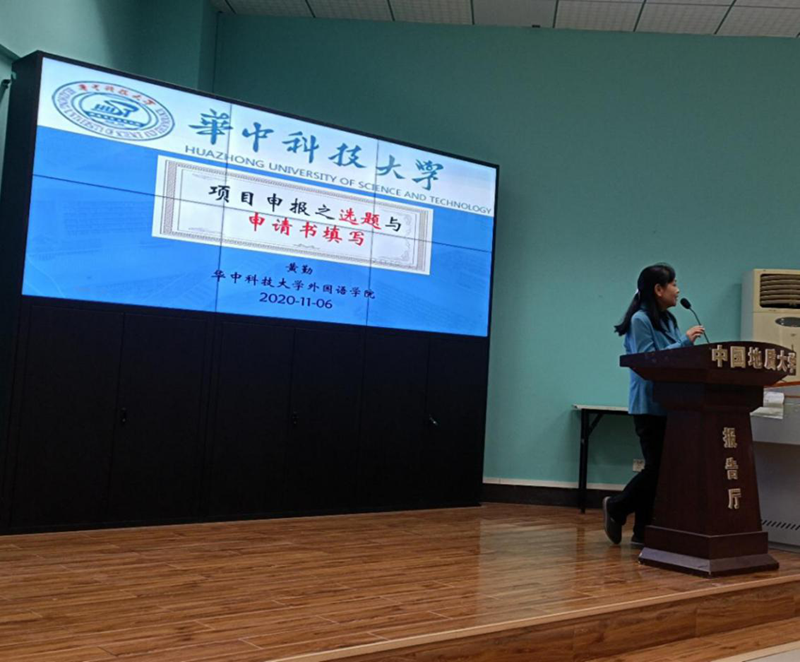 2020年11月6日上午9点,YABO鸭脖官网“南望今声”外语论坛系列讲座第十六讲在北一楼报告厅正式拉开帷幕。华中科技大学博士生导师黄勤教授应邀为YABO鸭脖官网师生做题为“项目申报之选题与申请书填写”的讲座。讲座由YABO鸭脖官网院长张峻峰教授主持,学院部分教师和研究生同学到场聆听。