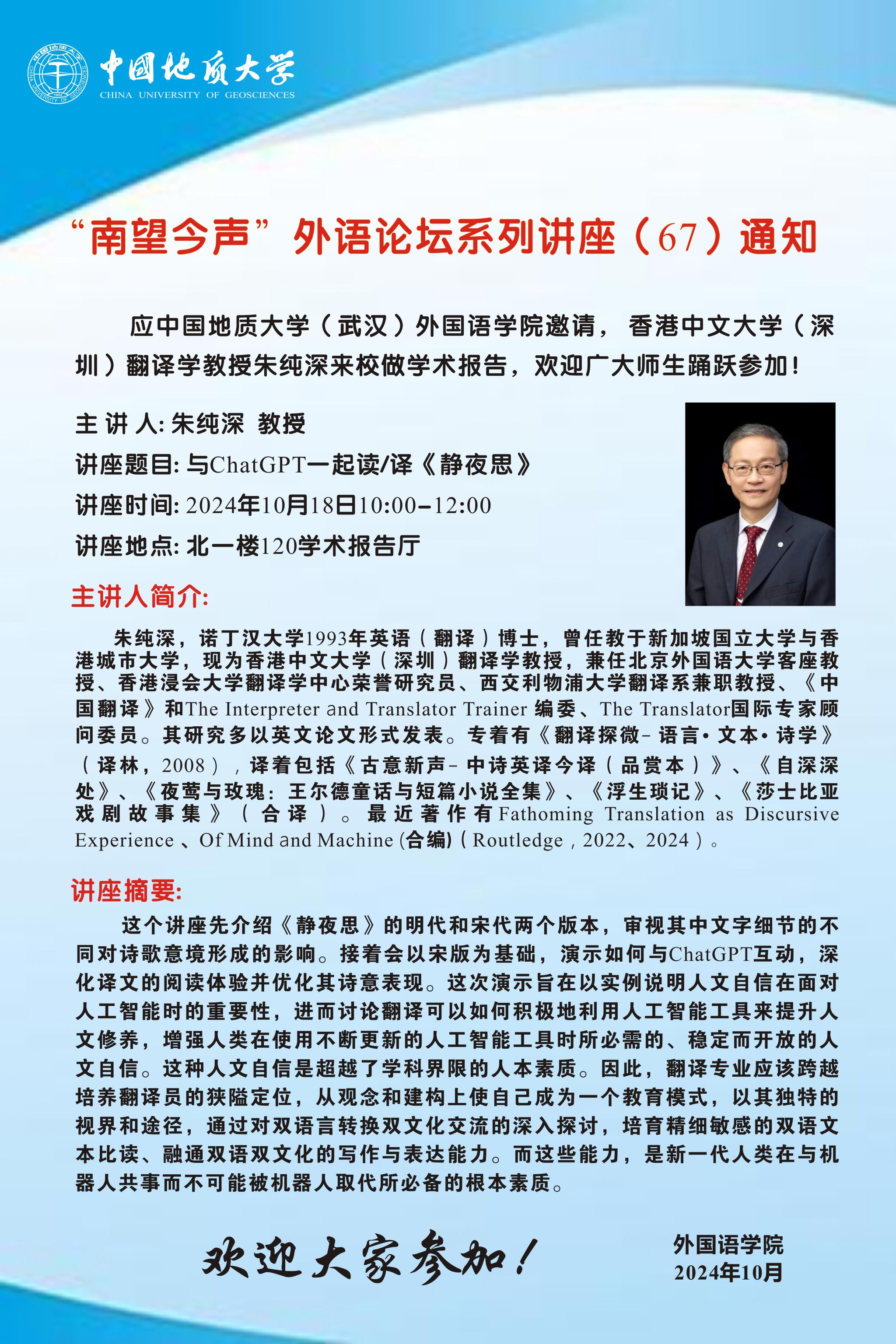 “南望今声”外语论坛系列讲座(67)通知