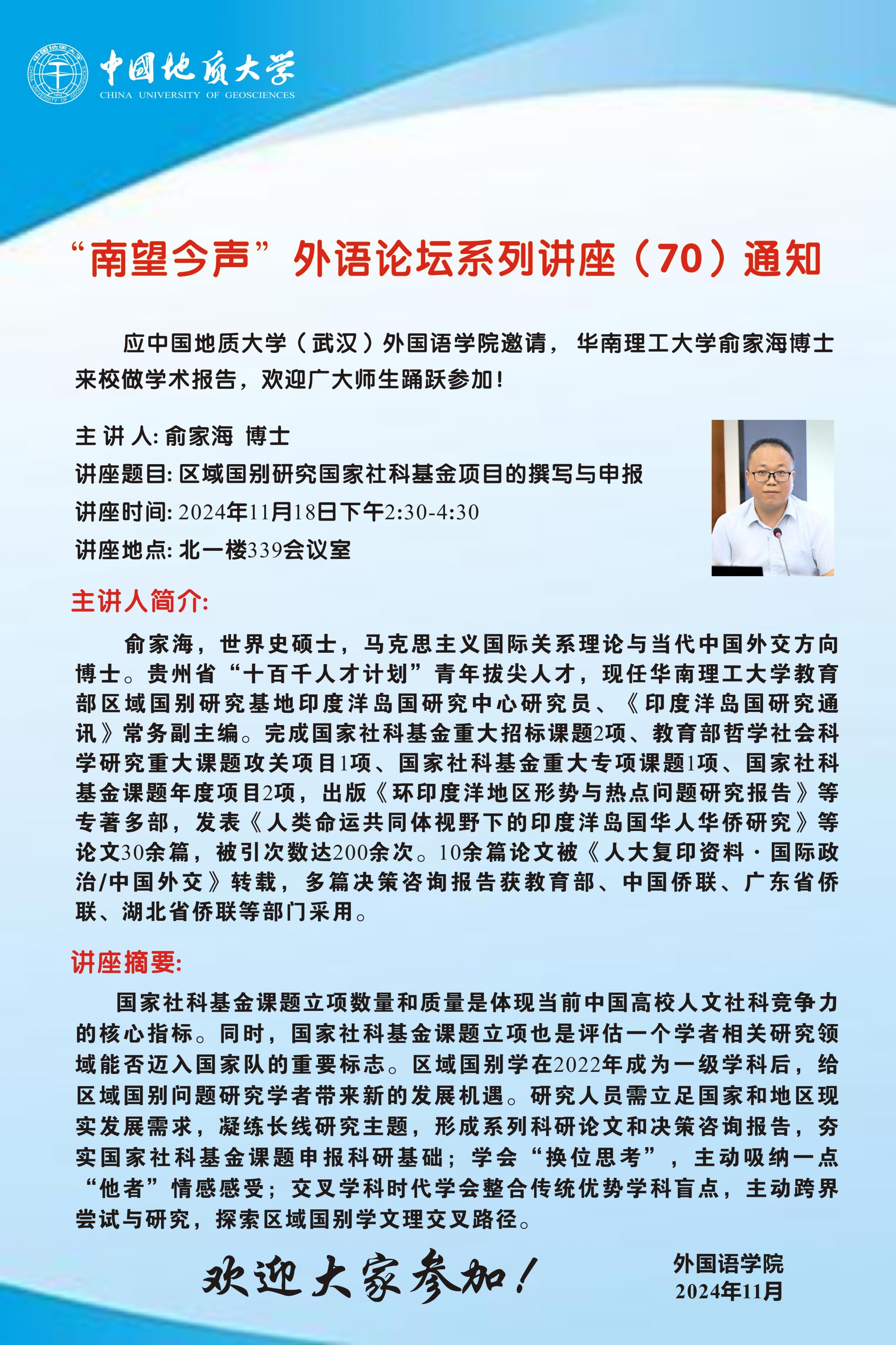 “南望今声”外语论坛系列讲座(69)报道