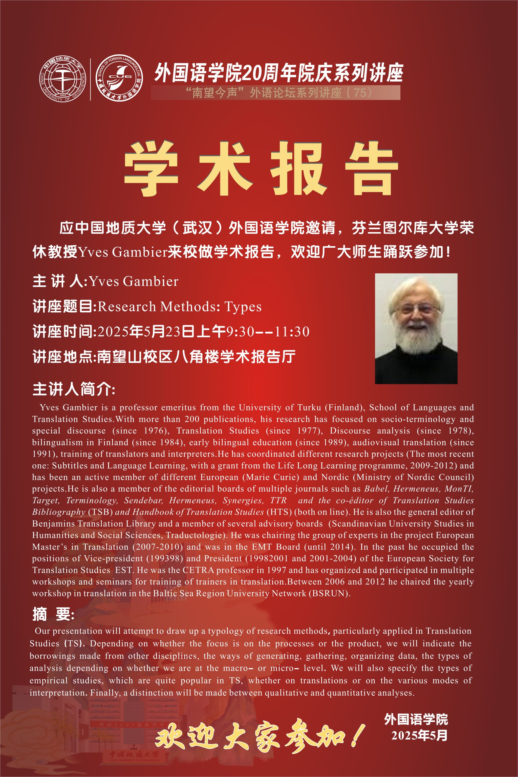 YABO鸭脖官网二十周年院庆暨“南望今声”外语论坛系列讲座第75期启幕