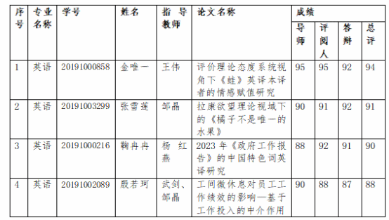 依据根据本科生院《关于做好2023届本科毕业论文(设计)答辩及优秀本科毕业论文(设计)评选工作的通知》和《本科毕业论文(设计)工作管理办法》中有关优秀本科毕业论文评选通知和流程,经学院学术委员应审定,拟推荐 金唯一、张雪莲、鞠冉冉、殷若珂 共四位同学的学士学位论文为校级优秀毕业论文。