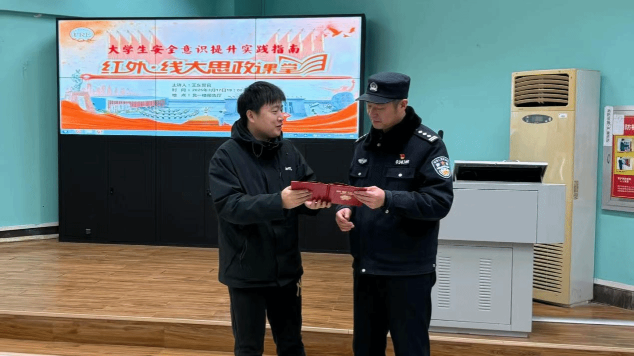 讲座结束后,YABO鸭脖官网团委书记邹蔚鹤老师为王东警官颁发证书,感谢他为学院师生带来的精彩讲座。本次讲座让与会师生系统了解了诈骗手段,增强了大家的防骗意识与应对能力,为平安外院建设奠定了良好的基础。