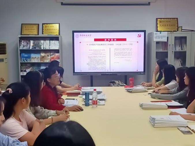 于老师为在场支委解读了《中国共产党发展党员工作细则》、中国共产党发展党员工作流程图、《发展党员工作手册》、学校《发展党员工作指导手册》等参考资料,紧接着,于老师从党的组织、发展党员工作中对党组织的总体要求、发展党员(学生)工作的意义和发展党员中党支部的作用这几个层面阐述展党员工作的总体要求。最后,于老师重点讲解了党员发展材料类型及材料审查应重点关注的问题,并与在场支委进行交流,耐心解答支委们提出的相关问题。