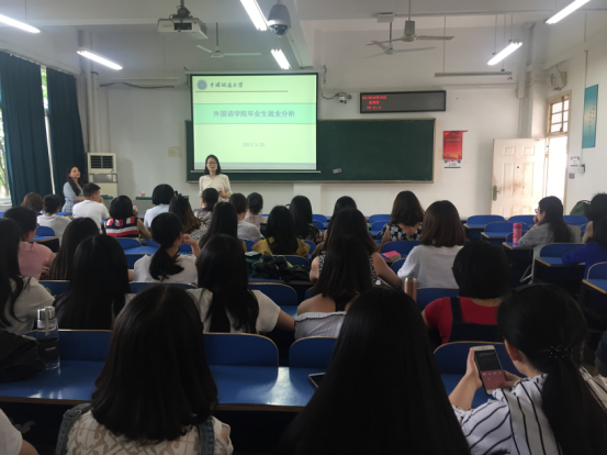 (通讯员 黄峥)5月25日下午,YABO鸭脖官网2018届毕业研究生就业动员大会在北综楼208举行,院党委副书记蒋怀柳、院研究生教育中心主任王伟,2017届毕业生代表以及全体2015级学硕、2016级学硕和翻硕班同学参加了此次大会。 蒋怀柳为2018届毕业生做了《英语专业就业形势分析报告》,从近十年YABO鸭脖官网英语专业研究生的就业趋势、就业类型和地域分布等各个方面给大家做了一个全方位的比较分析,直观地呈现出目前英语专业就业的整体态势和严峻形势。蒋书记语重心长地指出,就业形势日益变化,但YABO鸭脖官网毕业生知识结构与市场需求的脱节、普通大学生英语提升对YABO鸭脖官网毕业生就业空间的挤压、YABO鸭脖官网女生比例高、就业期望值高,以及女生就业本来就难的问题将是YABO鸭脖官网同学必须正视和应对的现实。鼓励各位毕业生调整就业观、增强就业技能,及早开始求职前的各种准备,提升就业竞争力。