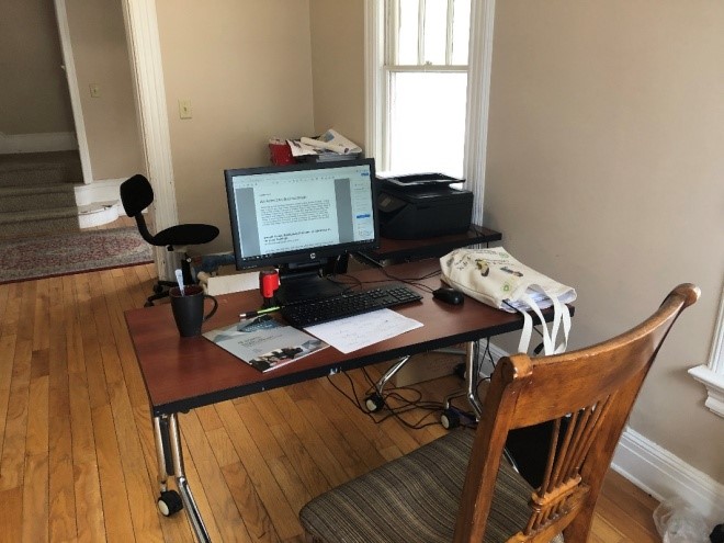(图六 我从办公室把电脑搬到了家里,开始在家办公。)
