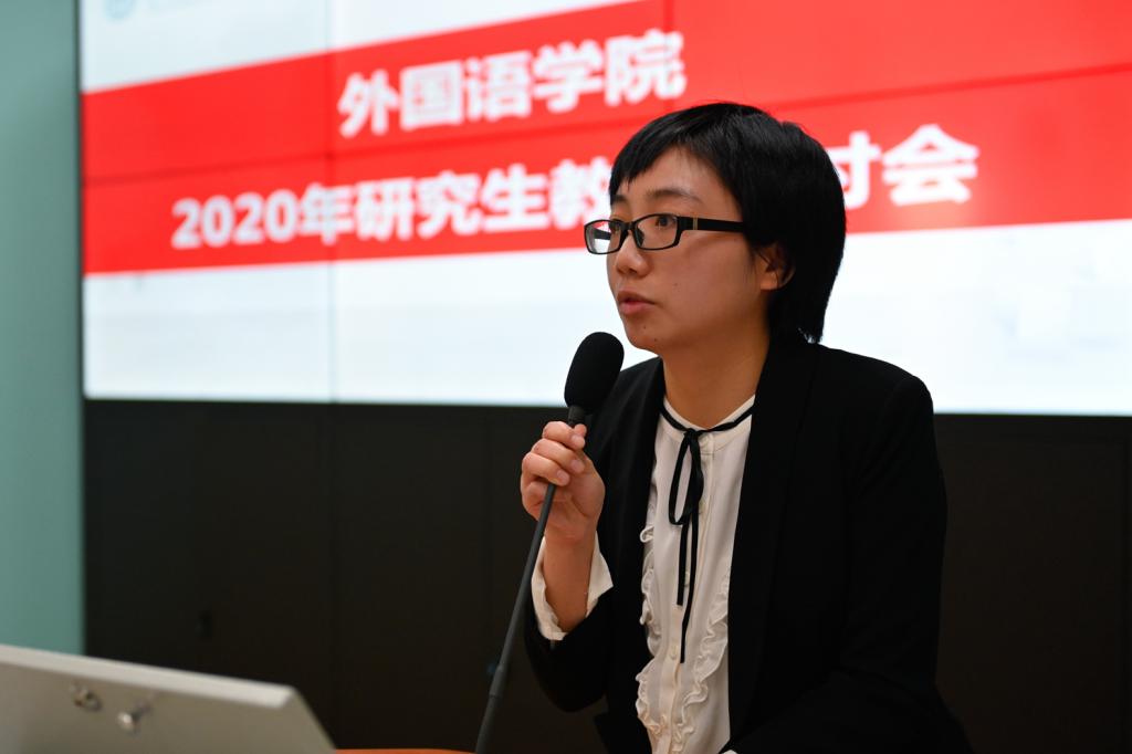 学院党政班子代表副院长刘芳以“公外研究生教学的现状与困境”为题,阐述了非英语专业研究生教学现状与发展瓶颈,希望学校和学院能够给予大学英语部进人指标,建立专门的研究生教研室,将公外研究生教学课时计入聘期考核等。