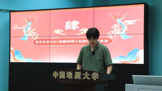 高年级研究生代表赵润东发言。他回顾自身在YABO鸭脖官网七年的成长与发展经历,勉励同学们在努力学习的同时不断拓展综合素养,争做新时代有为青年。