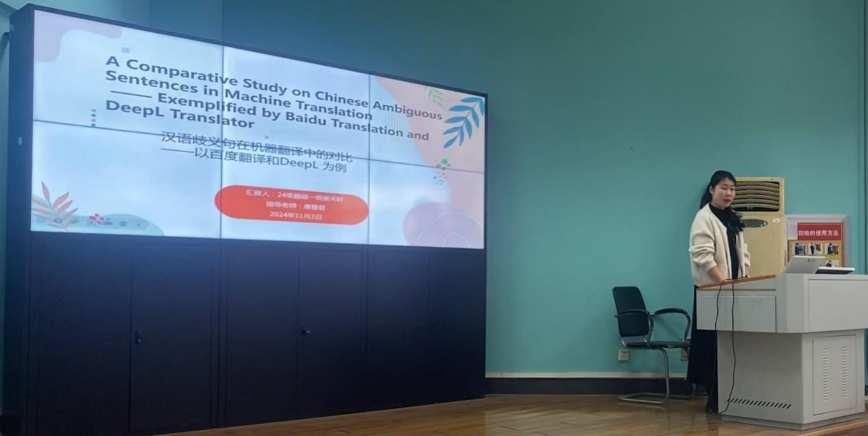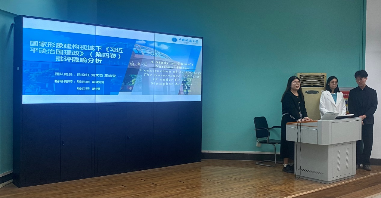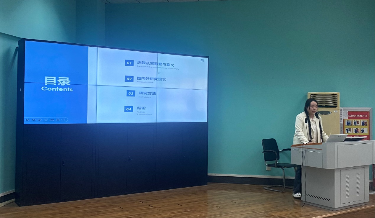 参赛团队按顺序进行答辩,同学们的选题涵盖了英汉翻译、英语文学、应用语言学等多个方面。选题方向与时俱进,紧跟国家发展方向;选题内容大胆创新,敢于实践;选题结构清晰明了,符合规范。