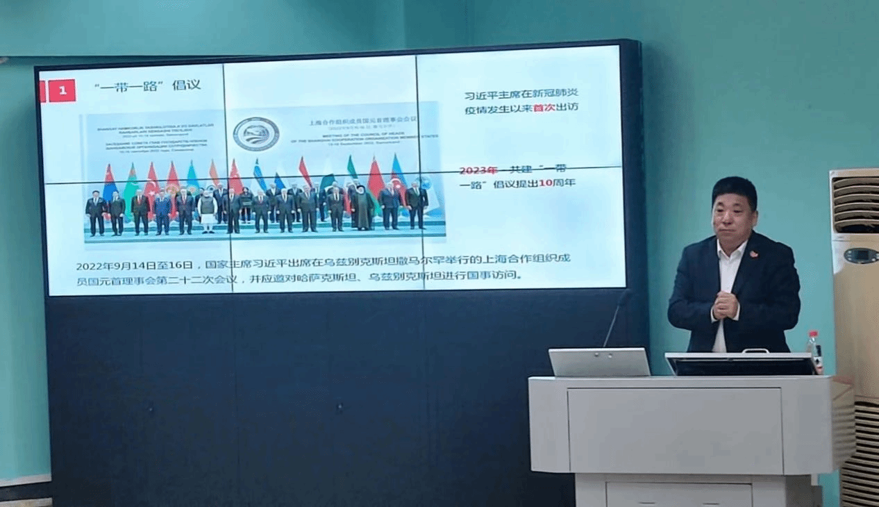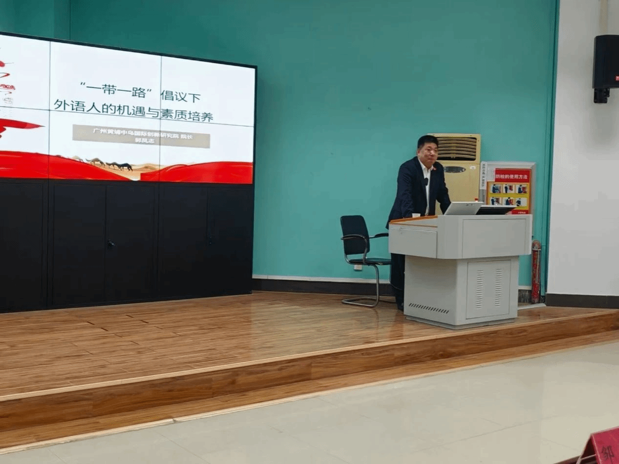 2024年12月24日下午4时,YABO鸭脖官网93届校友、广东科技企业合作促进会会长、广东-独联体国际科技合作联盟秘书长郭凤志受邀以“‘一带一路’倡议下外语人的机遇与素质培养”为主题在北一楼报告厅为学院师生开展红·外线大思政课堂讲座。讲座由学院党委书记刘世勇主持,YABO鸭脖官网近200名师生参加讲座。