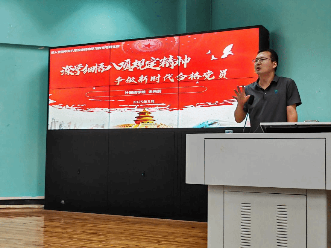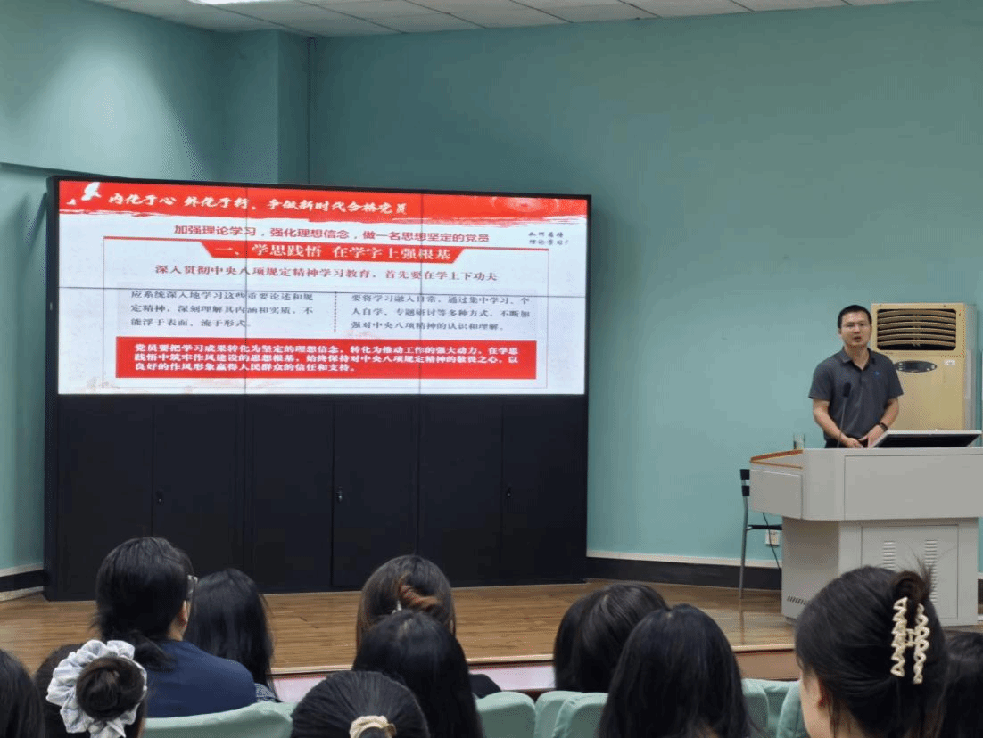 (通讯员 黎颖)为扎实推进深入贯彻中央八项规定精神学习教育,以“学”筑基来校准思想坐标,2025年5月26 日,YABO鸭脖官网党委副书记余尚蔚以“深学细悟八项规定精神,争做新时代合格党员”为题给全体学生党员讲授专题党课。