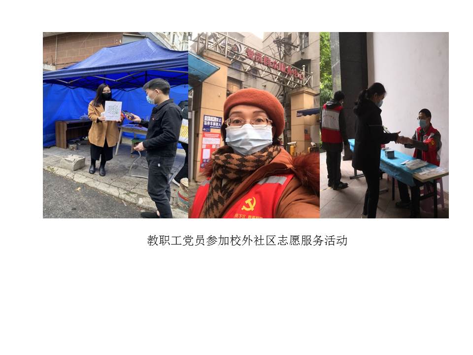 (通讯员宋干锋)本学期开学伊始,全国新冠肺炎疫情仍有发生,为确保校园平安,学校党委将疫情防控作为重要政治任务来抓,精心安排疫情防控工作,组织党员下沉社区开展志愿服务等。YABO鸭脖官网党委积极响应学校党委号召,组织教工党员参加疫情防控,党员干部带头,党员们积极行动,踊跃报名,发挥党员先锋模范作用,为学校筑牢校园平安防线。截至4月24日,共计100余人次参加核酸检测等志愿服务,累计服务时长达350余小时。其中孙来麟、李孝奎、周艳、俞仑燕、戴薇、董成见、宋干锋、王国念、刘敏、赵英科、张莉等同志多次参加校内疫情防控志愿者工作,为广大师生做出表率。