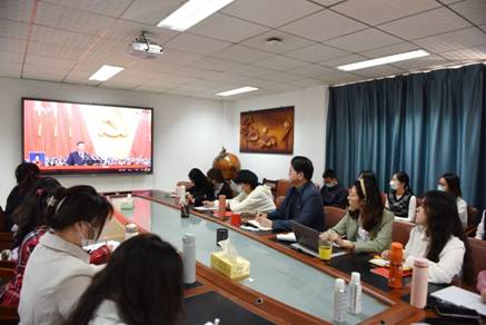 党委副书记胡文勤表示,学习习近平总书记向大会作的工作报告时应当做到三点:一是要全面、系统、立体地学,带着信念学、带着感情学、带着使命学、带着问题学,全体党员特别是党的领导干部更应当先学一步、学深一层,防止挂一漏万,以偏概全;二是要结合外语人的使命担当有重点地学,积极引导广大外语师生在加强外语学科专业建设和人才培养的同时,结合自身的语言优势,增强中华文明传播力影响力,坚守中华文化立场,讲好中国故事、传播好中国声音,展现可信、可爱、可敬的中国形象,推动中华文化更好走向世界;三是要理论联系实际在践行中学,要争当“在学中干,在干中学”的践行者,例如整合校内外资源进一步打造“译术行者”社会实践团和“一带一路”倡议宣讲团等思政育人品牌,推进红色文化的国际传播和人类命运共同体构建。