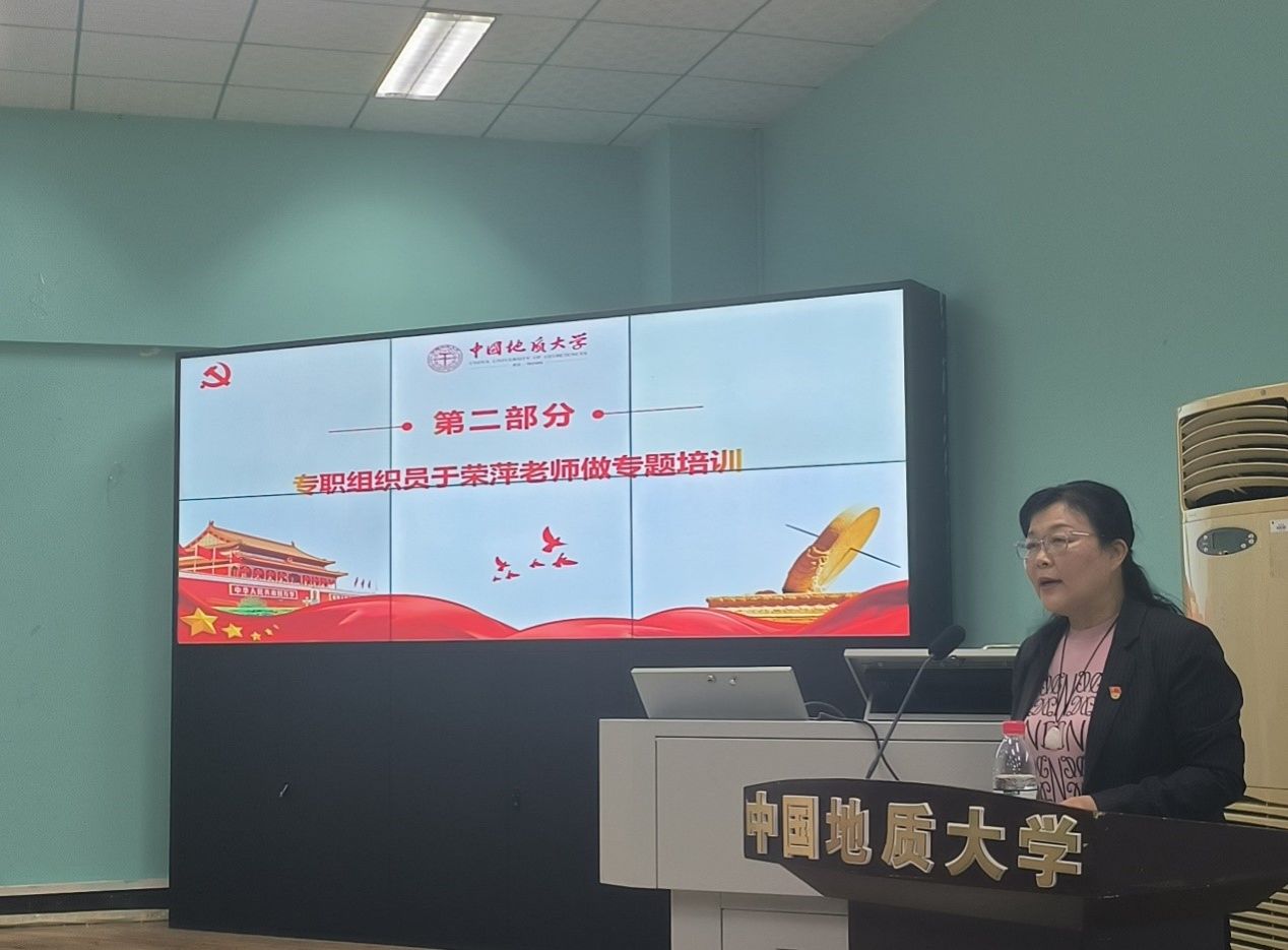 会议第二项议程,专职组织员于荣萍老师做党务工作专题培训。